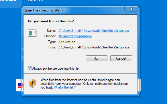 - Once you click on Run it will install the OneDrive.
