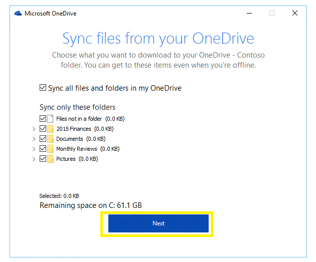 - In above screen if you Sync all folder click on Sync all or you can choose which one you want to Sync and the click on next you will see below screen.