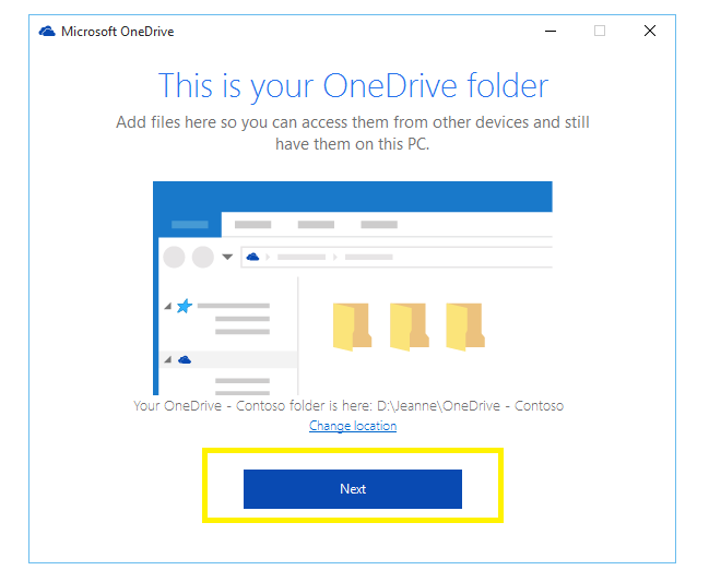 - If you want to change the location, you can change and click on next you will see below screen with sync folders (We suggest to change the folder location to D drive because it will occupy the space of your C drive on default location)