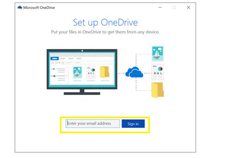 - Once successfully installed go to start and click on OneDrive you will see below screen